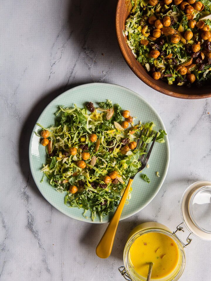 - Kale and Brussel Sprouts Salad with Turmeric Honey Yogurt Dressing