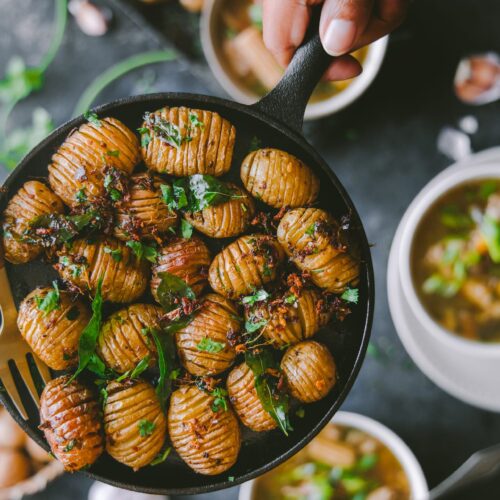 Hassleback Baby Potatoes with Garlic and Curry leaves